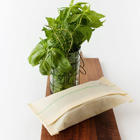 A few years back I got my hands on a pack of Abeego flats. From the manufacturer's website, they are "handcrafted with an authentic blend of beeswax, tree resin and jojoba oil infused into fabric made of hemp and cotton." They are also made in Canada. I loved them before I even used them! There is such a beauty to their simplicity, with their creamy beeswax color and the single row of colorful stitching in the fabric. They're lightweight and perfect for meals on the go!